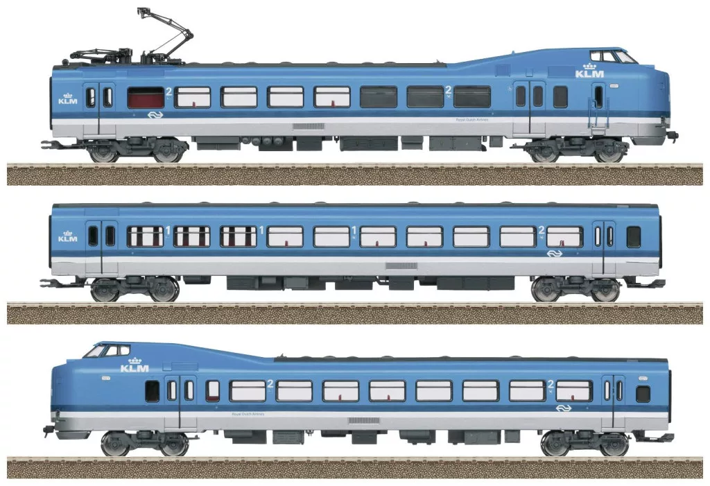 Modell: A mozdony digitális dekóderrel és kiterjedt hangfunkciókkal rendelkezik. 3 részes kivitel. Présöntvény alváz a motoros végkocsin. Ellenőrzött, nagy hatásfokú meghajtás lendkerékkel. 2 tengely hajtva egy forgóvázban. tapadási abroncsok. Vezetőfülke a két végkocsiban belső szerelvényekkel. A menetiránytól függő áramellátás az első motorkocsin keresztül. Speciális szoros csatlakozók lengésvezetővel. Szabványos beépített belső világítás. A hármas fényszórók és a 2 piros jelzőlámpa a menetirány szerint váltakozik, a belső világítás pedig hagyományos üzemmódban működik, digitálisan vezérelhető. A 2-es és 1-es kocsioldali fényszórók külön-külön digitálisan kikapcsolhatók. Fényszórók prototipikus világossárga és piros fénykibocsátó diódákkal (LED). Belső világítás meleg fehér LED-ekkel. Az alváz és a karosszéria részletes kialakítása. A végkocsikon a Scharfenberg tengelykapcsoló látható burkolattal. A kettős vontatás érdekében egy további merev tengelykapcsoló csatlakozással is rendelkezik. A sorozatgyártásban a végkocsikat zárt átmeneti ajtókkal tervezik. A mellékelt dugaszolható résszel a lengőajtók oldalra tolt csőrugós ábrázolása egy végkocsin lehetséges. A vonat teljes hossza 86,6 cm. Ez a modell AC változatban megtalálható a Märklin H0 szortimentben 37424 cikkszámon.
