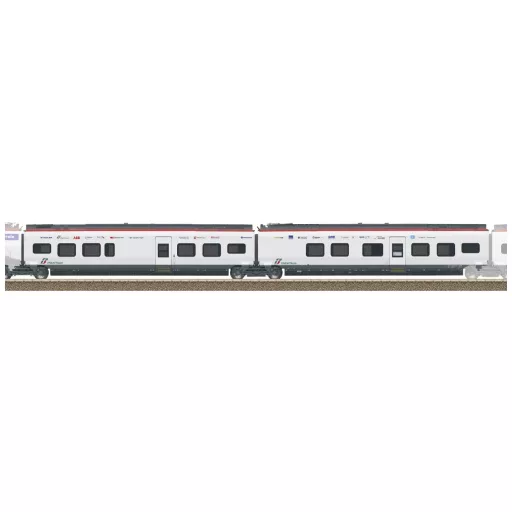 Modell: 2 részes kiegészítő autókészlet a RABe 501 Giruno nagysebességű motorvonat 11 darabosra bővítéséhez. A belső világítás alapfelszereltségű, karbantartást nem igénylő meleg fehér fénykibocsátó diódákkal (LED). A belső világítás a teljes vonat folyamatos elektromos csatlakozásán keresztül történik, és csak az alapkészlettel együtt működőképes és digitálisan kapcsolható. A középső autó áramszedője szintén csak digitális funkcióként, az alapkészlettel együtt emelhető és süllyeszthető külön a dekóderen keresztül. Mindkét középső autó szorosan össze van kötve egymással. Jelenetjárás a Jakobs forgóvázakban. Méretreplika. Minimális áthaladási sugár 360 mm. Az autópár hossza 40,2 cm. A 25811-es alapkészlet prototipikus 11 darabos egységgé bővíthető a 23284 és 23285 kiegészítő autókészletekkel. Ez a kiegészítő autókészlet a RABe 501 Giruno-hoz AC változatban megtalálható a Märklin H0 kínálatában a 43466 cikkszám alatt.