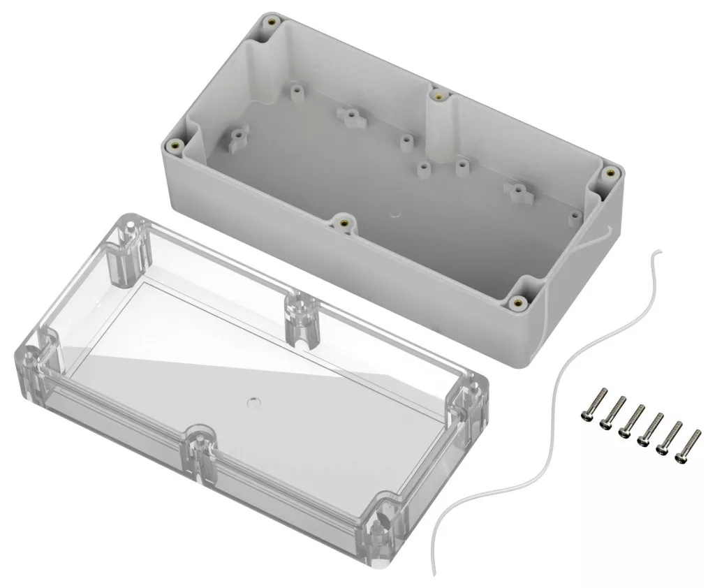 ABS/polikarbonát ipari burkolat átlátszó fedéllel
