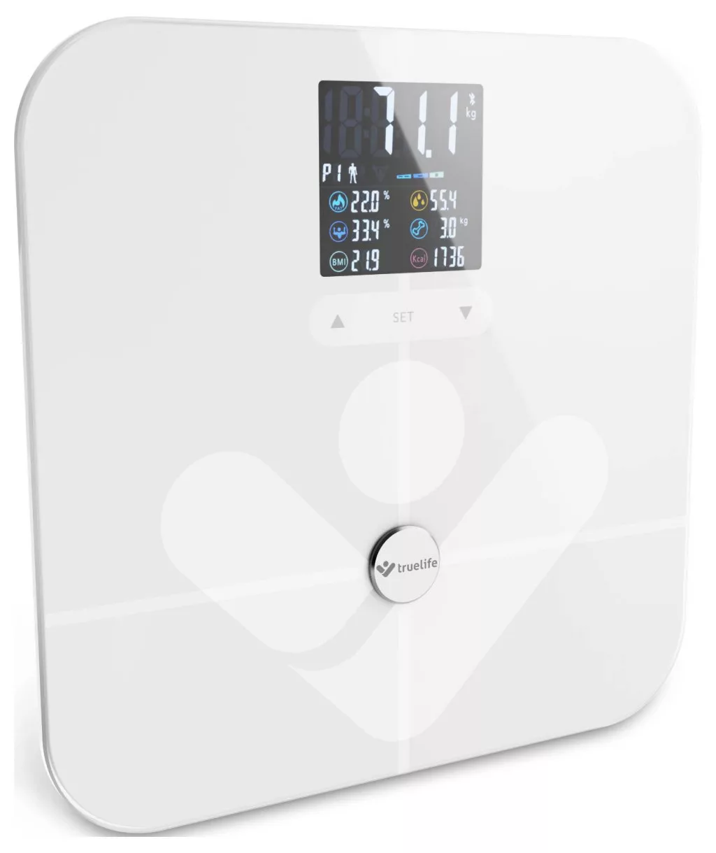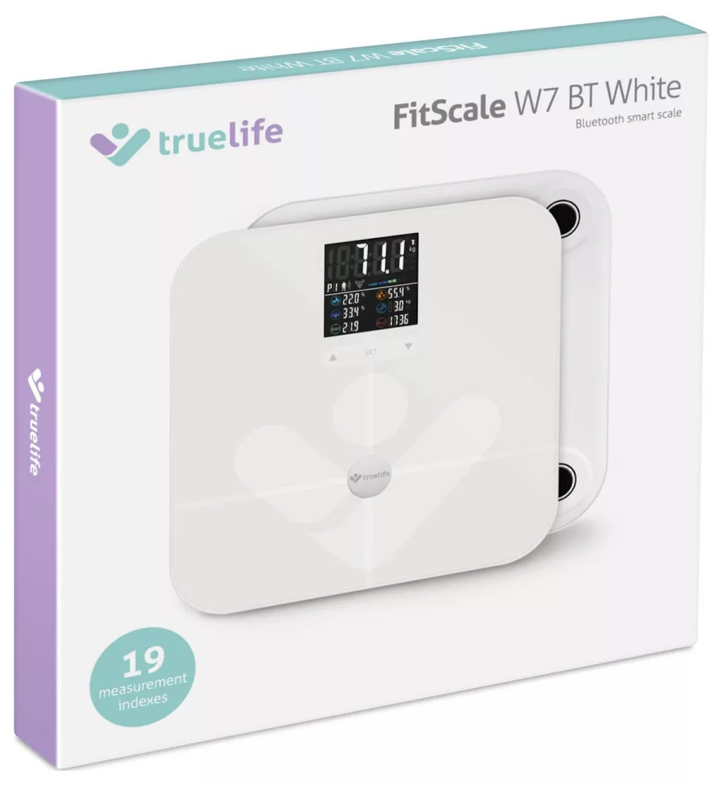 Figyelje meg testét részletesenAz egészséges életmód támogatásának legjobb módja a test tökéletes megértése. Ebben segíthet a TrueLife FitScale W7 BT okosmérleg. A súlymeghatározáson túl bioelektromos impedanciaanalízissel diagnosztikát is végez, és 19 mérhető indexet számol ki, melyből 7 az alkalmazás nélkül is kiszámítható. A felhasználó egy átlátszó színes LCD kijelzőn olvashatja le az eredményeket. Bluetooth-on keresztül csatlakoztathatja a mérleget mobiltelefonjához, és letöltheti az alkalmazást, hogy még részletesebb áttekintést kapjon arról, hogy mi történik a testével. A mérleg edzett ITO üvegből készült, mely nagyon strapabíró és 180 kg-ig terhelhető. Nézze meg egészségét holisztikusan, a súly önmagában nem a legfontosabb mutató.