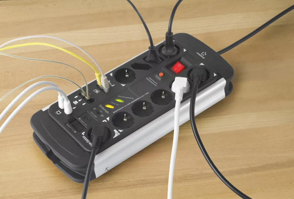 Maximum 5 készülék automatikus bekapcsolásához használható. A slave dugaszoló aljzatokhoz csatlakoztatott készülékek egy főkészülék ("mester" dugaszoló aljzat) segítségével vezérelhetők. A mesterfunkció tartós üzembe kapcsolható. A kapcsolási küszöbérték 8 - 80 W között beállítható. Az elosztó csatlakozó aljzatai (2 db védőérintkezős/ 2 db Euro) folyamatosan feszültség alatt állnak és a főkapcsolóval be és kikapcsolhatók. Továbbá beépített túlfeszültség védelemmel rendelkezik, ami a TV-, RJ11- és az RJ45 aljzatokat is ellenőrzi. Optikai túlfeszültség védelem kijelzés. Visszaállítható túlfeszültség védelem.