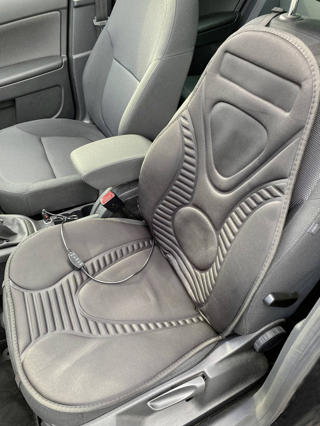 A két fűtőfokozat a LED-es be-ki kapcsolóval kapcsolható és több kényelmet nyújt. Beépített túlmelegedés védelem és biztosíték a szivargyújtó csatlakozóban. Rögzítés a háttámlán