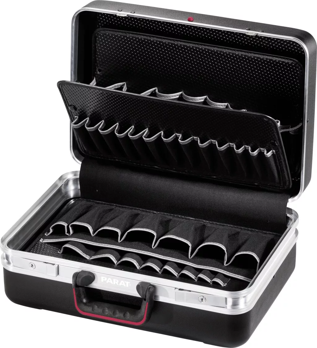 A PARAT CLASSIC szerszámos tok sorozatban ez a fekete tok abszolút klasszikus. Ideális belépő szintű esetként, de megfelel a legmagasabb követelményeknek a szakmai területen is. A toknak van egy nagy alsó héja, amelynek fedőlapja van a nagyobb felszerelésekhez, és több zsebes szerszámlap.