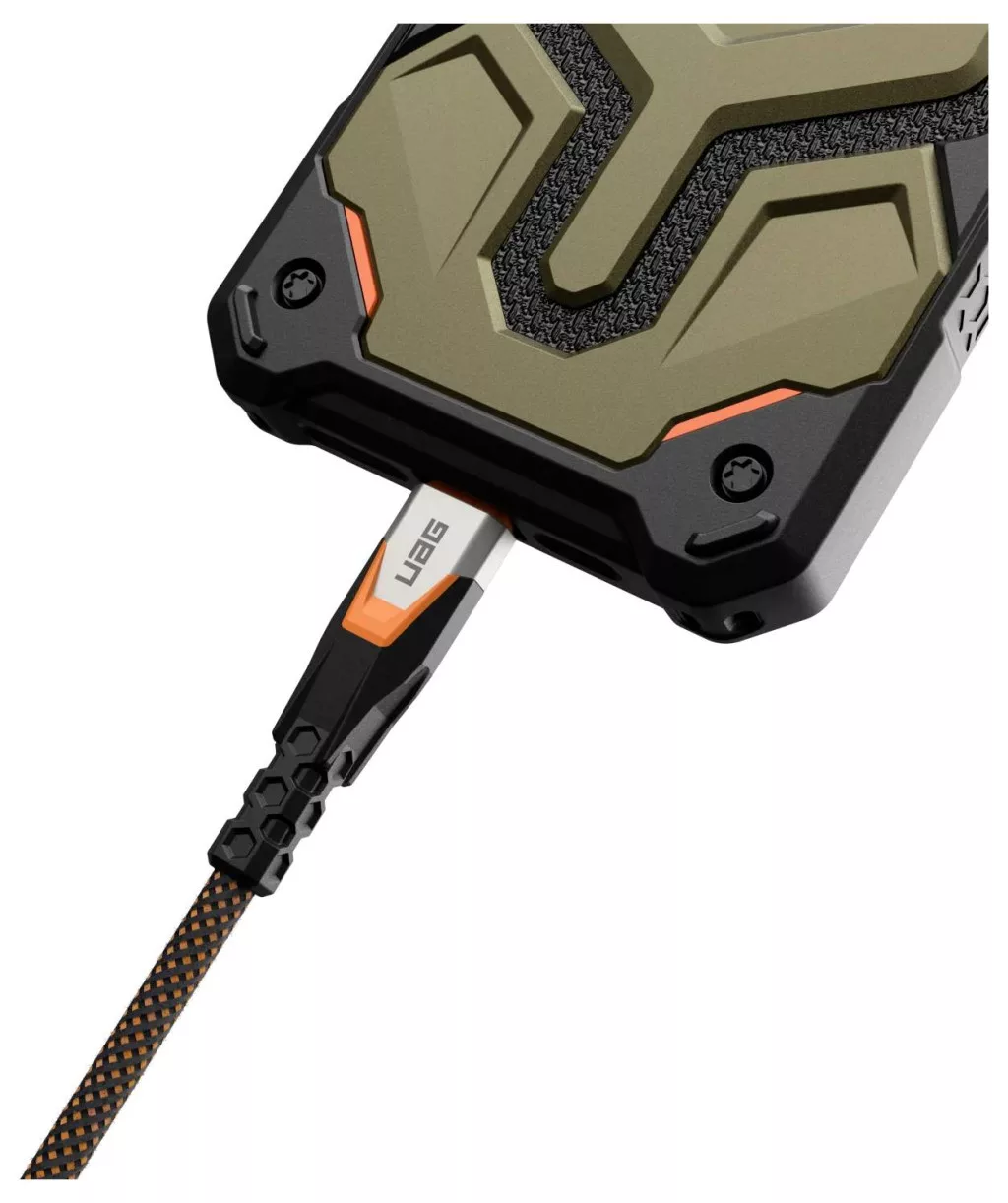 A készüléked minden eddiginél gyorsabban fog tölteni. Az SRGE 3.2 USB-C 20 Gbps 240 W-os kábel a valaha volt legmagasabb minőségű töltő- és adatkábelünk, tartós konstrukcióval, amely kiállja az idő próbáját. A 70 cm-es hosszúság ideális telefon, tablet vagy laptop csatlakoztatásához, akár 240 W-os gyorstöltést és 20 Gbps adatátvitelt biztosítva. A többirányú Hex Matrix feszültségmentesítő fejlett védelmet nyújt az ismételt hajlítás ellen. Fonott nejlonnal bevonva a szilárdság és a tartósság érdekében. Juss messzebbre és most gyorsabban az UAG-val.