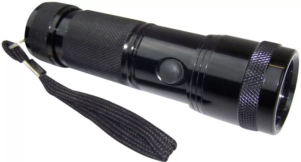 Jellemzők: Hullámhossz 395 - 400 nm · 14 nagy teljesítményű LED telepítve · Masszív alumínium ház · Egyszerű kezelés · Oldalsó nyomáskapcsoló · Jó fogású felület