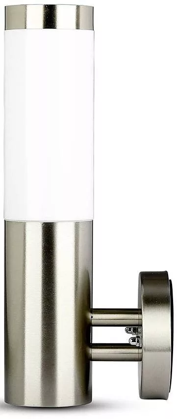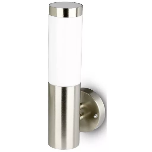 Elegáns, rozsdamentes acélból készült fali lámpa kültéri használatra.