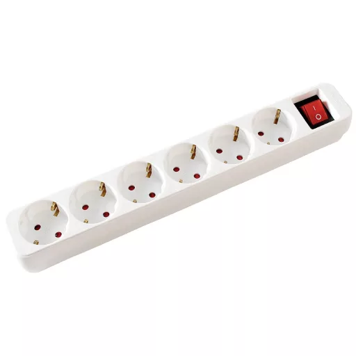 Műszaki adatok: Anyag: Műanyag · Csatlakozási teljesítmény: 3600 W · Dugaljak száma: 6 · Gyártói szín: Fehér · Hálózati csatlakozó típus: Védőérintkezős · Hálózati elosztó jellemzők: Kapcsolóval · Kábel típus DIN/VDE szerint: H05VV-F 3G 1,5 mm² · Kábelhossz: 10.00 m · Méret, hossz: 320 mm · Méret, magasság: 40 mm · Méret, szélesség: 52 mm · További műszaki adatok: Kimenetek elrendezése: sor