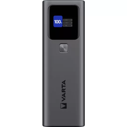 Ismerd meg a valaha volt legerősebb VARTA külső akkumulátorunkat! A VARTA nagysebességű külső akkumulátor 27 000 mAh kapacitásával akár 3 eszközt, például okostelefonokat, táblagépeket és akár laptopokat is képes napokig táplálni! 140 W-os kimeneti teljesítményével egy MacBook Pro-t mindössze 40 perc alatt 16-ról 50%-ra tölt fel!* Tartsa kézben az irányítást az intelligens kijelzővel, amely valós időben mutatja a teljesítményt, az akkumulátor töltöttségi szintjét és a hőmérsékletet. A külső akkumulátor kompakt és repülésre is alkalmas, így tökéletes minden utazáshoz. Élvezze a maximális teljesítményt, a dizájnt és a díjnyertes VARTA biztonságot.