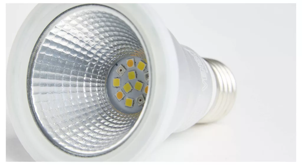 Technical specifications: Foglalat: E27 · Fényforrások száma: 5 · Fényszín (fényforrás): Semleges fehér · Hullámhossz arány (fehér): 6 · Hullámhossz arány (piros): 3 · Hullámhossz tartomány (fehér): 400–700 nm · Hullámhossz tartomány (piros): 640–660 nm · Méret, hossz: 100 mm · Sugárzási szög: 30 ° · Súly: 150 g · Teljesítmény: 7 W · További műszaki adatok: Ház anyaga: alumínium