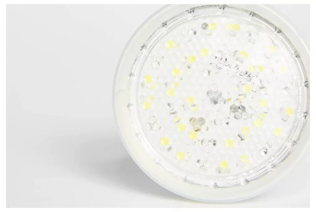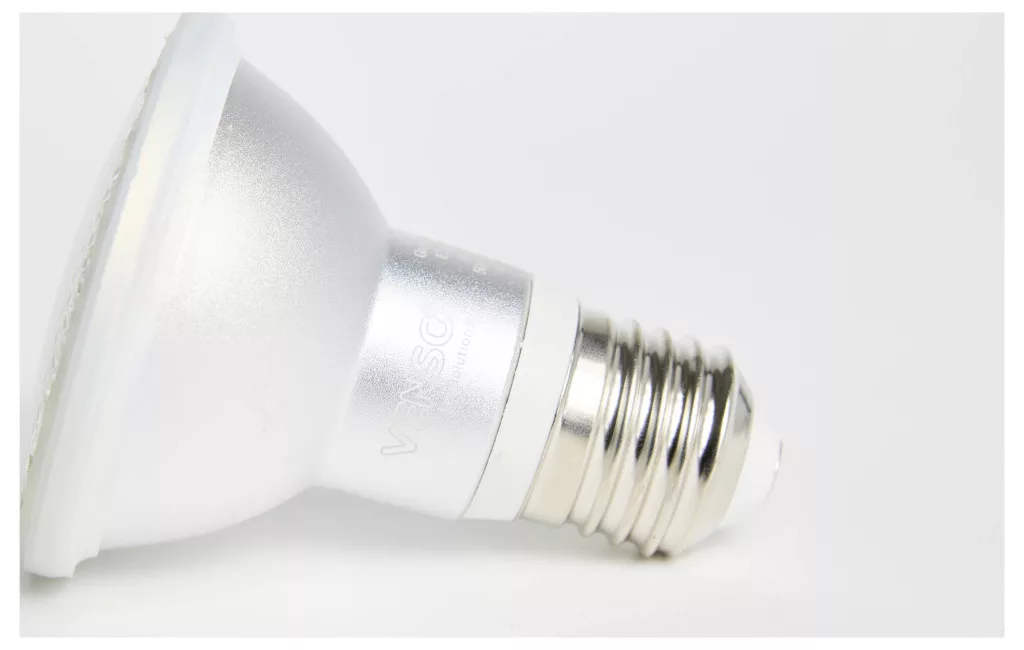 Technical specifications: Foglalat: E27 · Fényforrások száma: 6 · Fényszín (fényforrás): Nappalifény fehér · Hullámhossz arány (fehér): 3 · Hullámhossz arány (kék): 3 · Hullámhossz tartomány (fehér): 400–700 nm · Hullámhossz tartomány (kék): 430–450 nm · Méret, hossz: 100 mm · Sugárzási szög: 120 ° · Súly: 150 g · Teljesítmény: 7 W · További műszaki adatok: Ház anyaga: alumínium