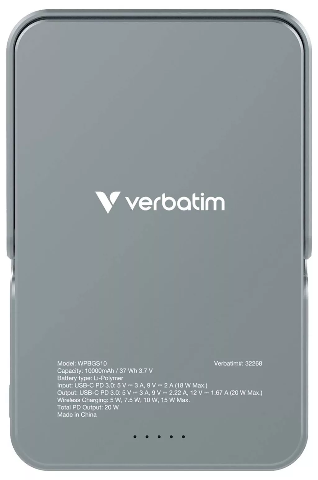 Package contents: Verbatim Charge ' n' Go mágneses vezeték nélküli külső akkumulátor, 10 000 mAh,Mágneses fémgyűrű,USB-C - USB-C kábel,Gyors üzembe helyezési útmutató