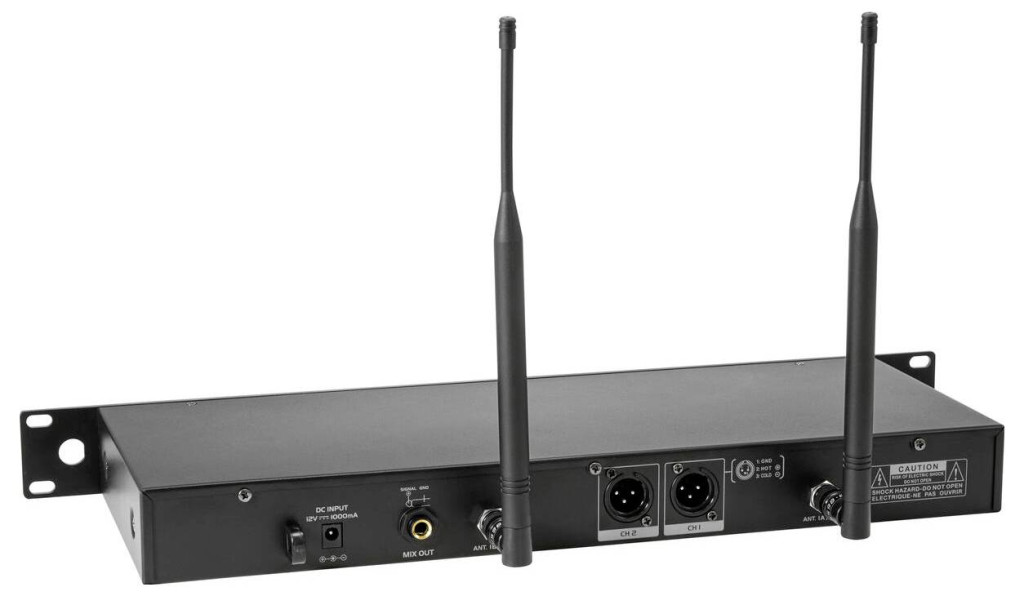 Package contents: 1 db vevő,2 db antenna,1 db külső tápegység,2 db mikrofon,2 db tartó,4 láb,1 db jack kábel,Használati útmutató,1 db Megfelelőségi nyilatkozat.