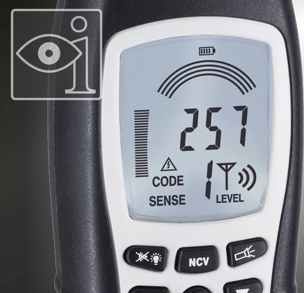 Az adójel vezeték nélküli követése a vevőn keresztül. Lokalizálja az elektromos kábeleket, biztosítékokat, védőkapcsolásokat, fémes csöveket (pl. fűtéscsöveket), stb.