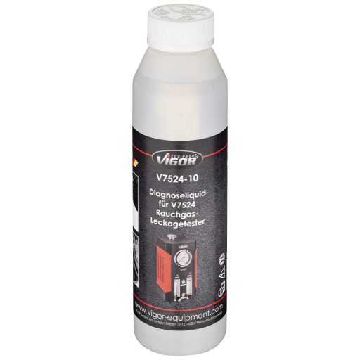 Felhasználásra kész diagnosztikai folyadék sűrű, fehér és szagtalan gőz előállításához a Vigor V7524 füstgázszivárgás-vizsgálóban