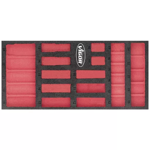 2K puha habszivacs betét Betét méretei / fiók mérete: S (188 x 393 x 35 mm) VIGOR 2 komponensű puha habszivacs betétek Könnyen tisztítható: folyó víz alatt tisztítható és szárazon A piros bemélyedés miatt azonnal feltűnik a hiányzó szerszámok Minden benne van hely - a tökéletes sorrend Megvédi a szerszámokat, mivel csúszásmentesen vannak beágyazva Minden szerszámnak megvan a maga előre meghatározott helye Olaj- és zsírálló Méretek / hossz: 393 mm x 188 mm x 35 mm