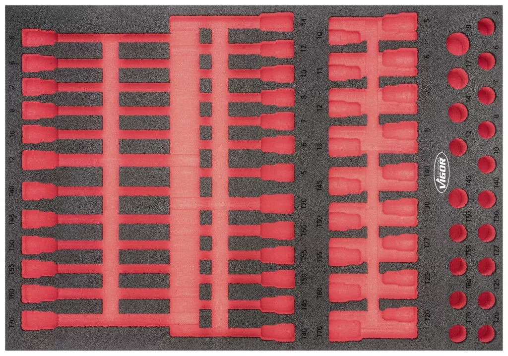 2K puha habszivacs betét Betét méretei / fiók mérete: L (563 x 393 x 35 mm) VIGOR 2 komponensű puha habszivacs betétek Könnyen tisztítható: folyó víz alatt tisztítható és szárazon A piros mélyedés miatt azonnal feltűnik a hiányzó szerszámok Minden benne van hely - a tökéletes sorrend Megvédi a szerszámokat, mivel azok csúszásmentesen vannak beágyazva Minden szerszámnak megvan a maga előre meghatározott helye Olaj- és zsírálló Méretek / hossz: 563 mm x 393 mm x 35 mm