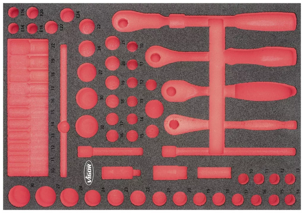 2K puha habszivacs betét Betét méretei / fiók mérete: L (563 x 393 x 35 mm) VIGOR 2 komponensű puha habszivacs betétek Könnyen tisztítható: folyó víz alatt tisztítható és szárazon A piros mélyedés miatt azonnal feltűnik a hiányzó szerszámok Minden benne van hely - a tökéletes sorrend Megvédi a szerszámokat, mivel azok csúszásmentesen vannak beágyazva Minden szerszámnak megvan a maga előre meghatározott helye Olaj- és zsírálló Méretek / hossz: 563 mm x 393 mm x 35 mm