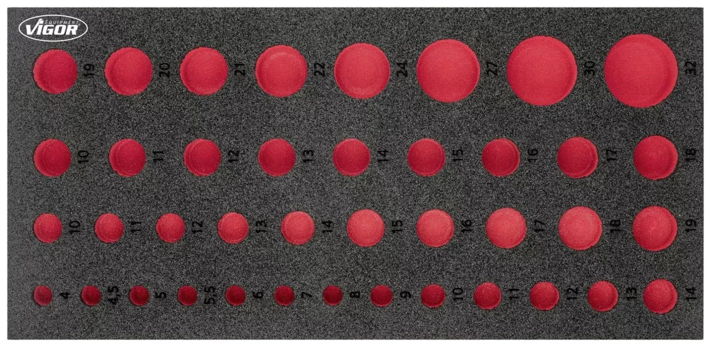 2K puha habszivacs betét Betét méretei / fiók mérete: S (188 x 393 x 35 mm) VIGOR 2 komponensű puha habszivacs betétek Könnyen tisztítható: folyó víz alatt tisztítható és szárazon A piros bemélyedés miatt azonnal feltűnik a hiányzó szerszámok Minden benne van hely - a tökéletes sorrend Megvédi a szerszámokat, mivel csúszásmentesen vannak beágyazva Minden szerszámnak megvan a maga előre meghatározott helye Olaj- és zsírálló Méretek / hossz: 393 mm x 188 mm x 35 mm