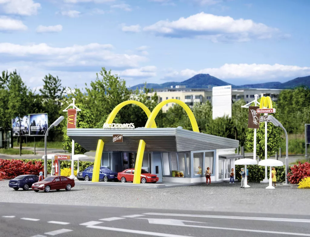A modellt a McDonald's Germany céggel közösen fejlesztették ki és hagyták jóvá. Az épület nyitott és hívogató. A lejtős tetőterület és a két sárga boltív jellemzi ezt az épületet. Sok nappali fény esik az étterem területére a nagy ablakokon keresztül. Járművezetőként megrendelését a McDrive speciális pultjánál kaphatja meg. A helyi viszonyoktól függően az étterem típusa sokféle változatban elérhető, pl. B. kiegészítve a McCafé szabadtéri területtel vagy nagyobb éttermi területekkel, bővítéssel. Ezúton szeretnénk köszönetet mondani a McDonald's Németországnak a kedves támogatásért. Lakberendezéssel, 4 napernyővel, 2 zászlóval és McDonald's logóval ellátott oszloppal.