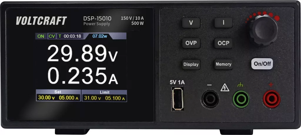 Műszaki adatok: Bemeneti feszültség (num): 100 V/AC, 240 V/AC · Csatlakozók (építőelemek): USB · Hőmérséklet (max.): 40 °C · Hőmérséklet (min.): 0 °C · Kalibráció: Gyári standard (tanúsítvány nélkül) · Kimenetek száma: 1 x · Kimeneti feszültség (max.): 150 V · Kimeneti feszültség (min.): 0 V · Kimeneti áram (max.): 10 A · Méret, hossz: 185 mm · Méret, magasság: 92 mm · Méret, szélesség: 200 mm · Műanyagmentes csomagolás: Műanyagmentes csomagolás · Súly: 1.6 kg · Teljesítmény: 500 W