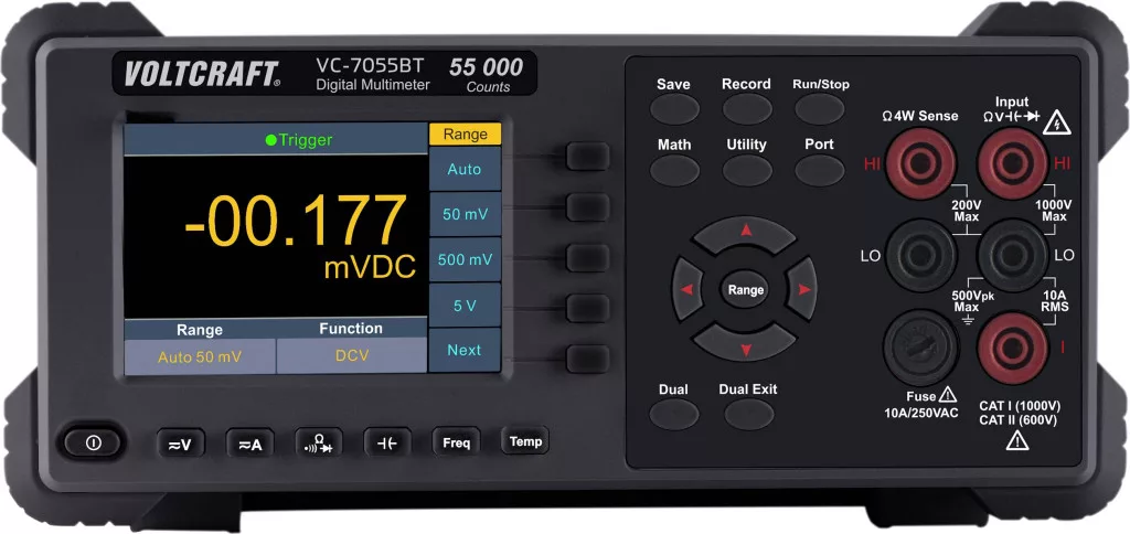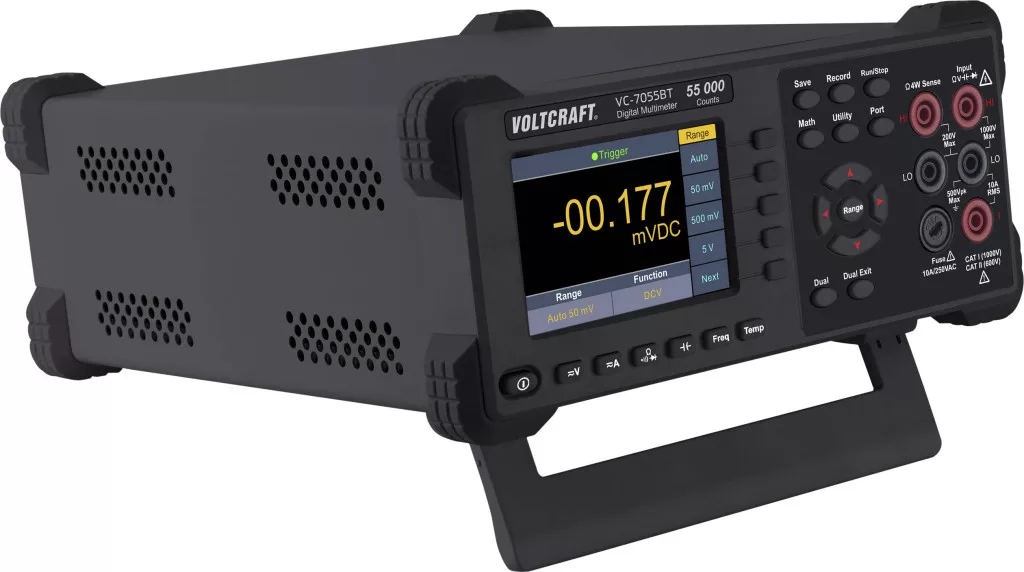 A Voltcraft VC-7055BT egy 4 1/2 számjegyű asztali digitális multiméter, amely a mérési eredmények funkcióinak széles skáláját kínálja (Max/Min, dB/dBm).