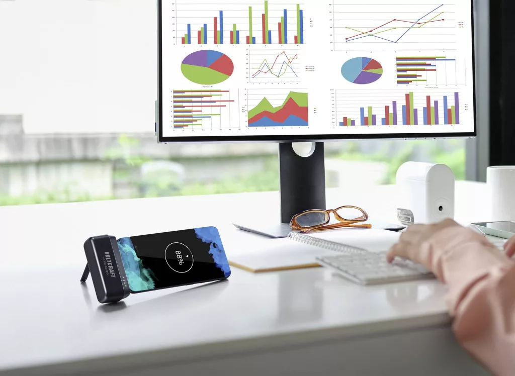 Az extra energiaadagAzok, akik sokat utaznak, értékelni fogják ezt a mobil töltőállomást okostelefonokhoz, táblagépekhez stb.: A Voltcraft VC-PBP3040PD külső akkumulátor USB-C® porttal és integrált összecsukható állvánnyal rendelkezik, amely lehetővé teszi a kijelző kényelmes megtekintését töltés közben. Az energiatároló egység LED-eken keresztül jelzi működési állapotát, és túlfeszültség, túlterhelés, túlmelegedés és rövidzárlat ellen védett.