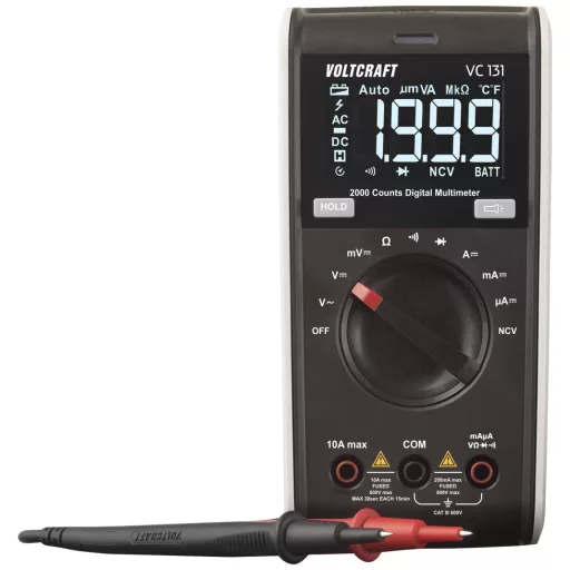 A VOLTCRAFT VC 131 kézi multiméter az Ön robusztus belépő szintű eszköze számos mérési feladathoz, és leváltja a rendkívül sikeres elődöket (VC-130 és VC-135). A készülék automatikus tartományválasztással rendelkezik, és DC és AC feszültséget is képes mérni.