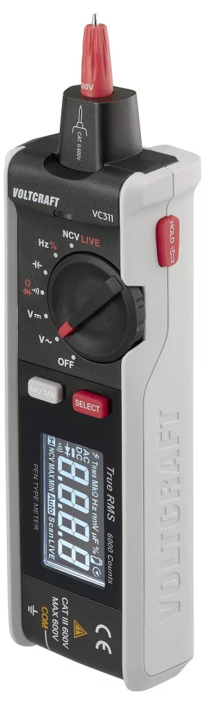 Biztonságos használatA CAT III 600 V szabványnak megfelelően tanúsított Voltcraft VC311 jelzést is használ a veszélyes feszültségek mérésekor felmerülő különleges veszélyek jelzésére. A feszültségtesztek érintésmentesen (NCV) végezhetők.