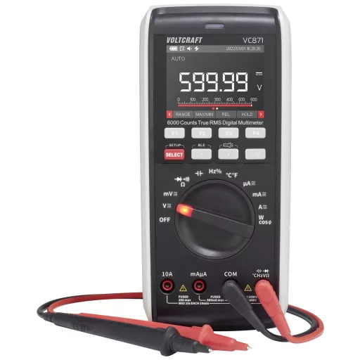 Távolról olvasvaA VC-871 Android vagy iOS eszközökkel kommunikál Bluetooth® LE 4.0-n keresztül. Számos alkalmazási lehetőség létezik erre: Mérjen a motortérben, és olvassa le az értéket az okostelefonon a belső térben, vagy mérjen a vezérlőszekrényben, és nyomja meg a gép gombjait, hogy egyidejűleg leolvassa a mérési eredményt az okostelefonon. Hangkimenet aktiválható. Ezenkívül a multiméter távolról is vezérelhető okostelefonon keresztül, például delta módba kapcsolható.