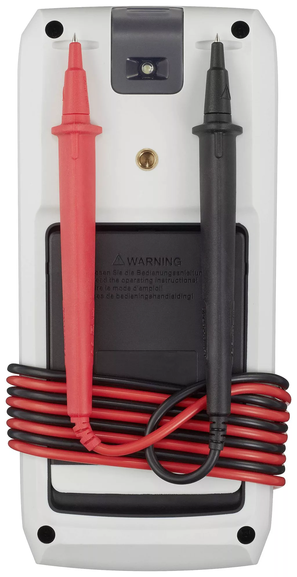 Úttörő mágneses technológia - mindkét kéz szabad a mérőhegyek számáraA házba épített extra erős neodímium mágnesek biztosítják a biztonságos tartást a vezérlőszekrény ajtaján. Ez azt jelenti, hogy a készüléket mérés közben már nem kell a padlóra helyezni. Építési helyszíneken végzett mérési feladatokhoz az egyik mérőcsúcs mágnesesen rögzíthető a multiméterhez. A beépített ferromágneses anyaggal ellátott speciális mérőhegyek biztonságosan és szilárdan tapadnak a multiméterhez – de nem a vezérlőszekrényhez. Az egyik mérőhegy a multiméterrel együtt egységet alkot az egyik kézben, a másik mérőhegy pedig a másik mérési ponthoz vezethető a másik kézben.