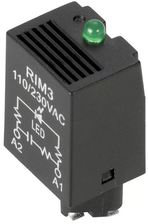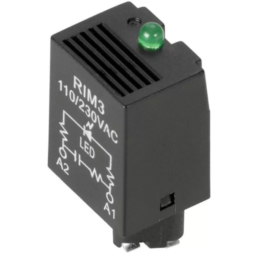 Műszaki adatok: Fényszín (fényforrás): Zöld · Házszín: Fekete · Max. üzemi feszültség: 230 V/AC · Méret, hossz: 32 mm · Méret, magasság: 12.5 mm · Méret, szélesség: 15.5 mm · Relé jellemzők: Kijelzővel, LED · Súly: 3.28 g · További műszaki adatok: Védő áramkör: RC elem RC szűrő: 100 Ω / 220 nF vezeték csatlakoztatási technológia: dugós csatlakozás · Üzemi feszültség (min.): 110 V/AC