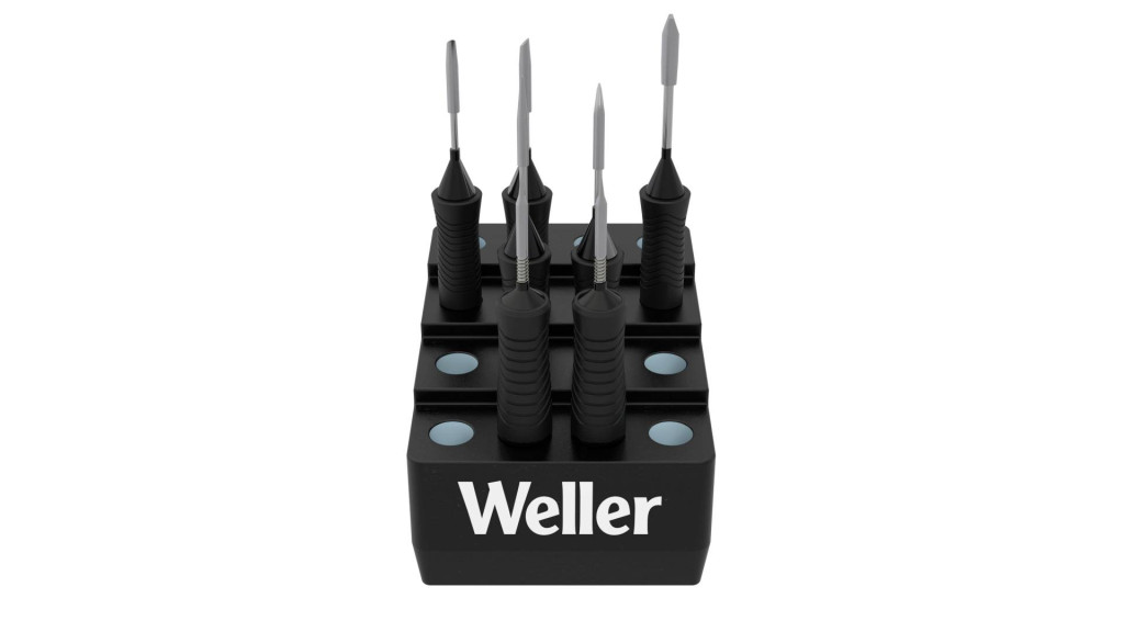 Minden Weller RT aktív forrasztóhegy könnyen hozzáférhető és biztonságosan tárolható a WCTH csúcstartóban. Minden RTU, RTP és RTM tipphez. Minden forrasztóhegy függőlegesen van elhelyezve, így az összes forrasztóhegy stílus és méret jól látható. Munkaterülete tiszta és rendezett a WCTH forrasztóhegy tartójával. Akár 16 aktív Weller RT forrasztóhegy tárolható. Mindig ugyanabban a sorrendben tegye le kedvenc forró forrasztóhegyeit. Ezáltal a munkafolyamat következetes és biztonságos. A forrasztóhegy tartó minden Weller Active RT tip családhoz alkalmas és ESD-biztos.
