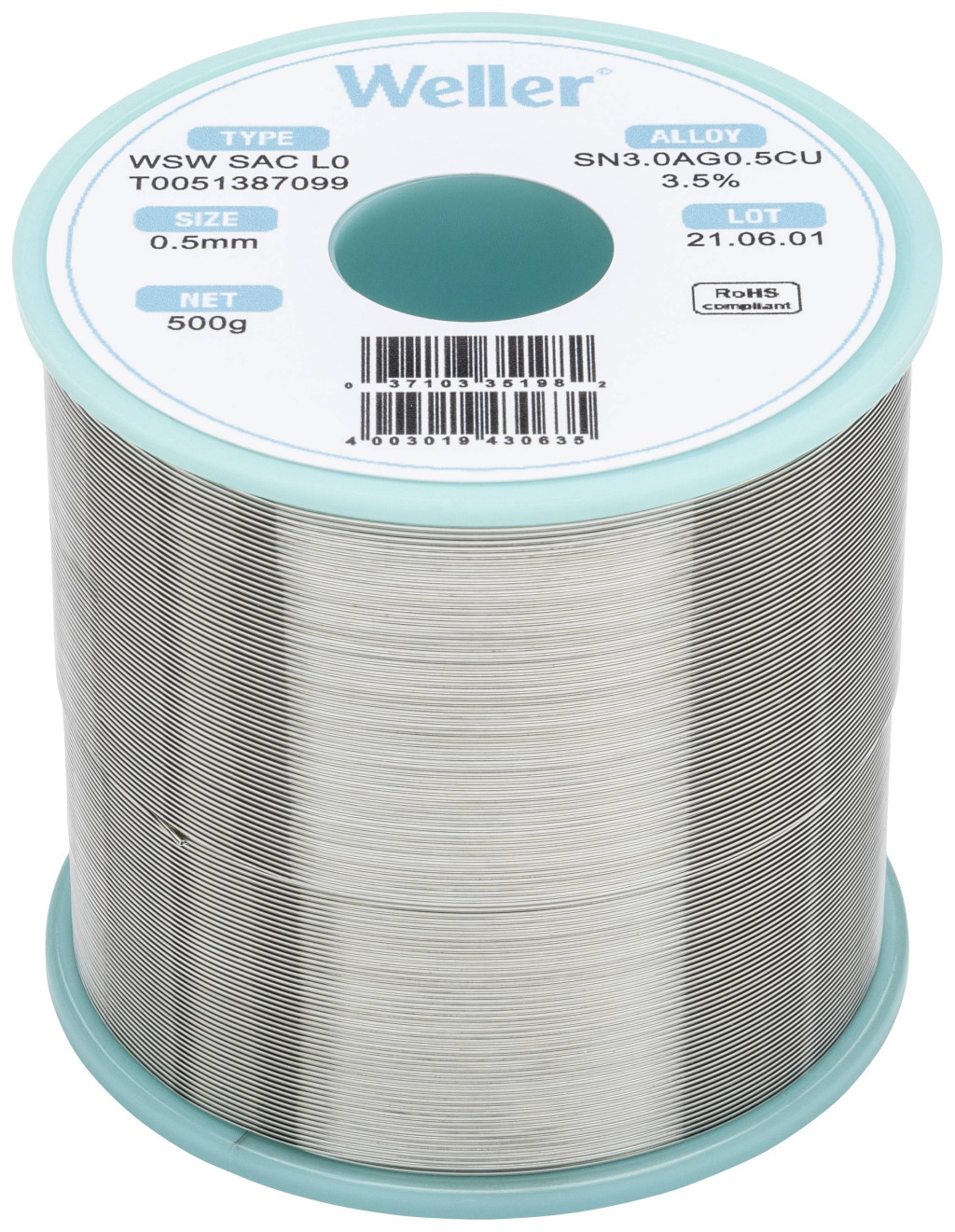 Weller WSW SAC L0 Forrasztóón, ólommentes Tekercs Sn3,0Ag0,5Cu 500 g 0.5 mm
