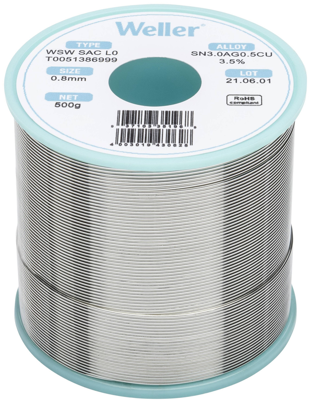 Weller WSW SAC L0 Forrasztóón, ólommentes Tekercs Sn3,0Ag0,5Cu 500 g 0.8 mm