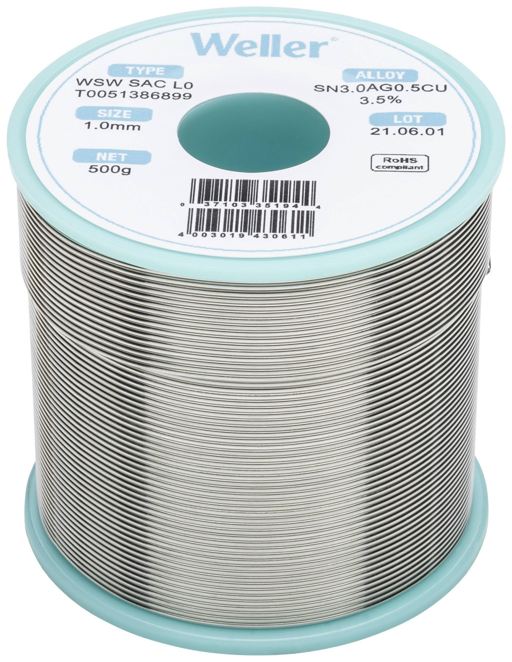 Weller WSW SAC L0 Forrasztóón, ólommentes Tekercs Sn3,0Ag0,5Cu 500 g 1 mm