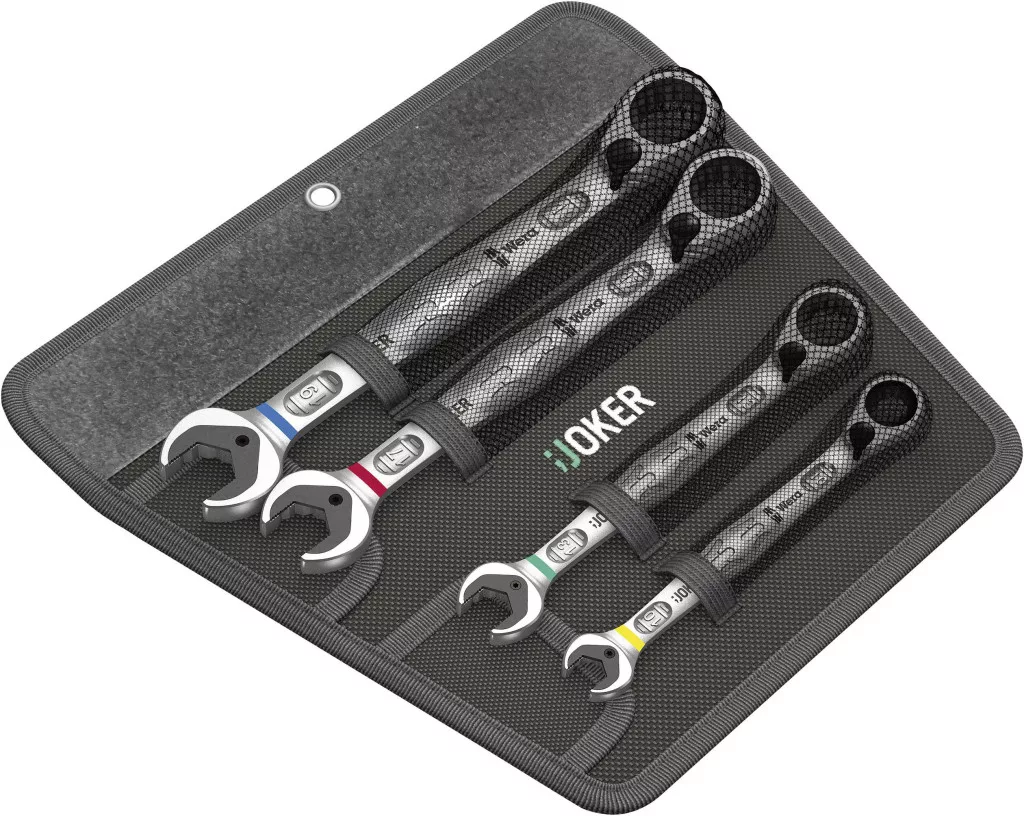 Minden elképzelhető helyzetben a Joker gyorsan és precízen oldja meg a csavarozási feladatokat. Ratchet kivételesen magas fogakkal, 80 fogakkal és váltókarral az egyszerű irányváltáshoz. A speciális kovácsolási geometria, kombinálva a jó minőségű króm-molibdén acéllal és a nikkel-króm bevonat három pontban teszi igen előnyössé, ezek: az igen hosszú élettartam, a nagy kopásállóság és a tartósan magas fokú korrózióvédelem. Színkódolással és kovácsolt méretjelzéssel a kívánt joker könnyű megtalálásához.