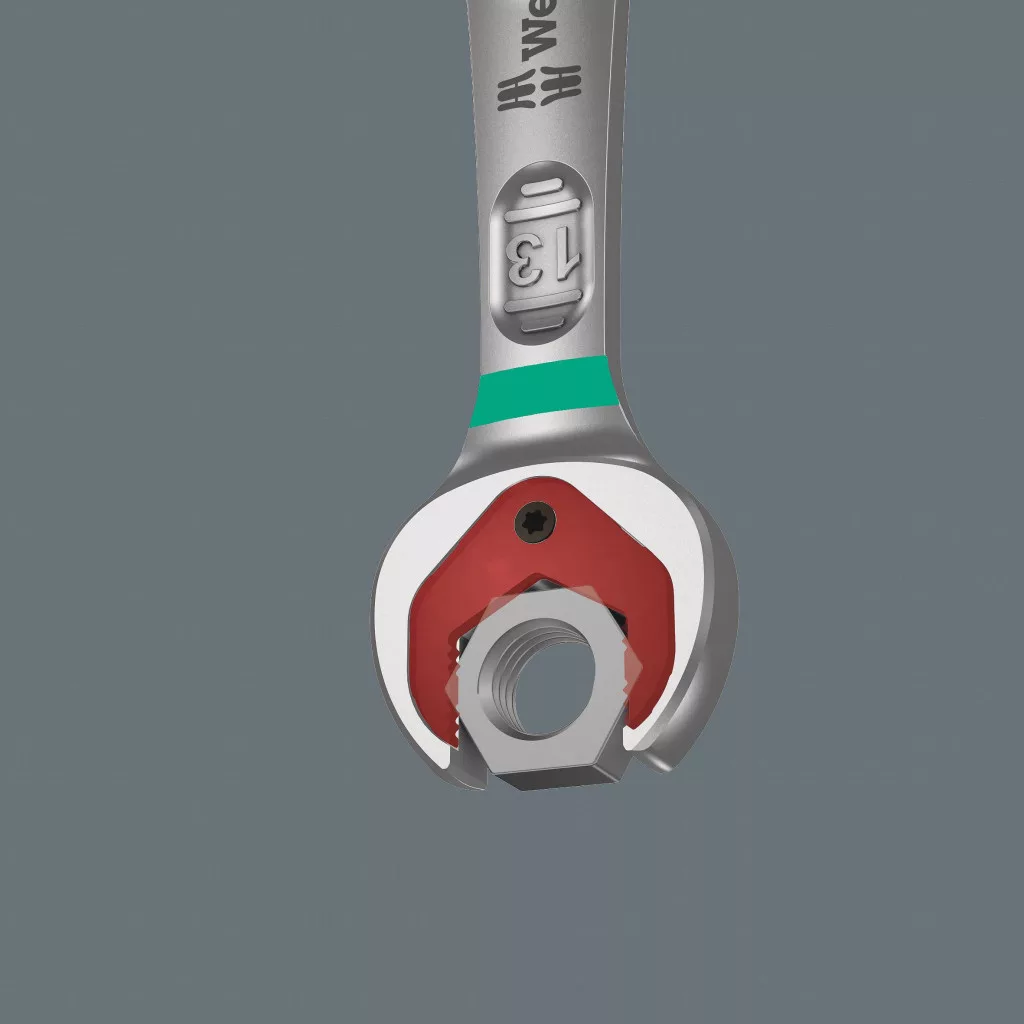 Kiváló minőségű, metrikus, dupla nyitott villáskulcs a Wera-tól: mindent, amit a kulcsnak képesnek kell lennie. És még sok más. Gyorsabb, jobb, szebb. Egy igazi vadkártya. A kombinált racsnis kulcsok új generációja. Hatszögletű csavarfejekhez vagy anyákhoz. A szájban lévő fémlemeznek köszönhetően tartó funkcióval rendelkezik, amely csökkenti a csavarok és anyák elvesztésének kockázatát. A szájban lévő cserélhető fémlemez rögzíti a csavarokat és az anyákat extra kemény fogakkal és csökkenti a csúszás kockázatát. Az integrált vég ütköző megakadályozza a csavarfej lecsúszását, és lehetővé teszi a nagy nyomatékok alkalmazását. A kettős hatszögletű geometria biztosítja a csavarral vagy anyával való pozitív kapcsolatot, és így csökkenti a csúszás kockázatát. A mindössze 30 ° -os elfordulási szög elkerüli a kulcs időigényes elfordítását csavarozáskor. A speciális kovácsolási geometria biztosítja a nagy nyomatékátadást és a nagy hajlítási merevséget. Nagyteljesítményű króm-molibdén acélból, nikkel-króm bevonattal a magas korrózióvédelem érdekében. A "Könnyen" eszközkeresővel: színkódolás a méret szerint.