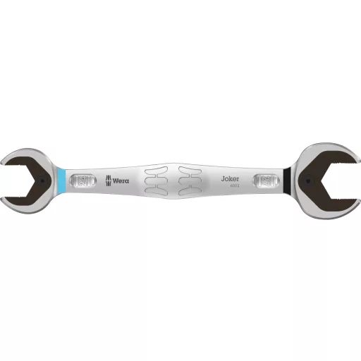 Kiváló minőségű, metrikus, dupla nyitott villáskulcs a Wera-tól: mindent, amit a kulcsnak képesnek kell lennie. És még sok más. Gyorsabb, jobb, szebb. Egy igazi vadkártya. A kombinált racsnis kulcsok új generációja. Hatszögletű csavarfejekhez vagy anyákhoz. A szájban lévő fémlemeznek köszönhetően tartó funkcióval rendelkezik, amely csökkenti a csavarok és anyák elvesztésének kockázatát. A szájban lévő cserélhető fémlemez extra csavarokkal és anyákkal rögzíti a csavarokat és az anyákat, és csökkenti a csúszás kockázatát. Az integrált vég ütköző megakadályozza a csavarfej lecsúszását, és lehetővé teszi a nagy nyomatékok alkalmazását. A kettős hatszögletű geometria biztosítja a csavarral vagy anyával való pozitív kapcsolatot, és így csökkenti a csúszás kockázatát. A mindössze 30 ° -os elfordítási szög elkerüli a kulcs időigényes elfordítását csavaráskor. A speciális kovácsolási geometria biztosítja a nagy nyomatékátadást és a nagy hajlítási merevséget. Nagyteljesítményű króm-molibdén acélból, nikkel-króm bevonattal a magas korrózióvédelem érdekében. A "Könnyen" eszközkeresővel: színkódolás a méret szerint.