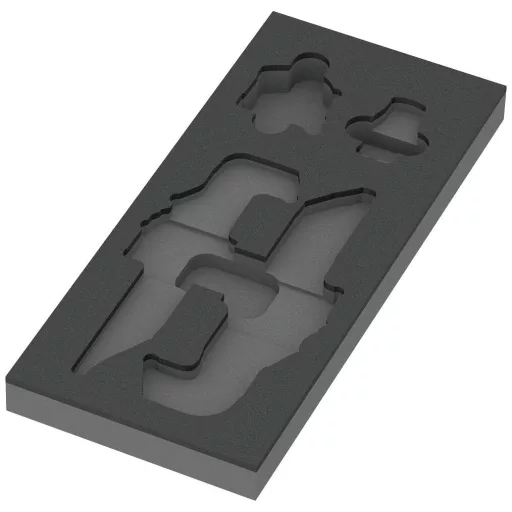 1 tartós hab tálca, szerszámok nélkül 2 szín a hiányzó alkatrészek gyors azonosításához Szélesség x magasság x mélység: 172 x 30 x 392 mm Csere habbetét Wera 9740-es cikkhez alkalmas a Tool Rebel műhelykocsihoz.