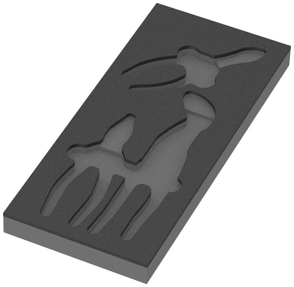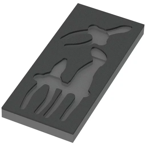 1 tartós hab tálca, szerszámok nélkül 2 szín a hiányzó alkatrészek gyors azonosításához Szélesség x magasság x mélység: 172 x 30 x 392 mm Csere habbetét Wera 9780-as cikkhez alkalmas a Tool Rebel műhelykocsihoz.