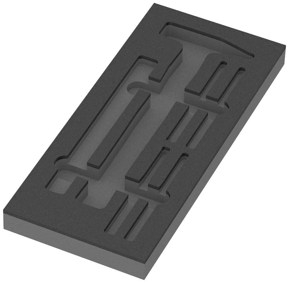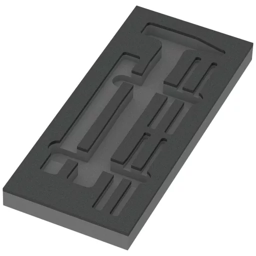 1 tartós hab tálca, szerszámok nélkül 2 szín a hiányzó alkatrészek gyors azonosításához Szélesség x magasság x mélység: 172 x 30 x 392 mm Csere habbetét Wera 9782-es cikkhez alkalmas a Tool Rebel műhelykocsihoz.