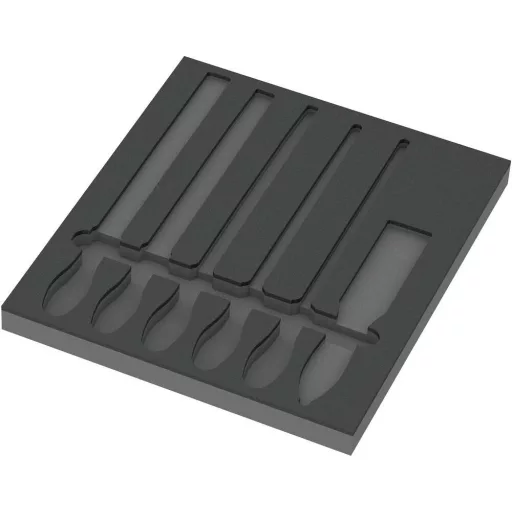 1 tartós hab tálca, szerszámok nélkül 2 szín a hiányzó alkatrészek gyors azonosításához Szélesség x magasság x mélység: 344 x 30 x 392 mm Csere habbetét Wera 9783-as cikkhez alkalmas a Tool Rebel műhelykocsihoz.