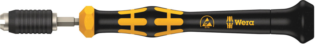 10 magas 9 ohm az elektrosztatikus energia elleni biztonságos védelem érdekében. Gyártás a DIN EN 61340-5-1 szabvány szerint. Fogantyú / cserélhető pengerendszer a villámgyors pengék cseréjéhez. Kraftform Micro markolat forgó kupakkal és gyorsan forgó zóna a villámgyors forgatáshoz, nincs szükség időigényes átfogásra. Teljesítményzóna beépített lágy zónákkal a nagy kioldási és meghúzási nyomatékok továbbításához. Precíziós zóna közvetlenül a penge felett a helyes forgásszöghez az állítási munka során. Villámgyors bitrögzítés: egyszerűen nyomja be a biteket a tartóba, automatikus reteszelés, biztonságos illesztés. A darab cseréjéhez egyszerűen tolja előre a hüvelyet, és vegye le a darabot. Szabadon futó működtető hüvely a szerszám egyszerű irányításához a csavarozás során. Bitek kézi és gépi működtetésű csavarozáshoz, elektromos csavarhúzóval (pl. HIOS, Delvo, Sehan). Használhatja például okostelefonokon, mobiltelefonokon, kamerákon, elektronikus készülékeken, fogászati laboratóriumokban és fogorvosi rendelőben.