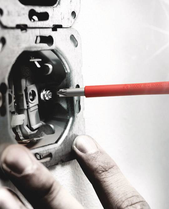 A Wera VDE csavarhúzó többkomponensű Kraftform Plus fogantyúval a gyors és szelíd munka érdekében: kemény markolatú zónák a nagy munkasebességhez, míg a puha markolatú zónák garantálják a nagy nyomatékátadást. Kombinált profilrés és Pozidriv *, különösen sorkapcsokkal, biztosítékdobozokkal, kapcsolókkal, relékkel történő használatra. Rendszeres vizsgálat 10 000 V-os vízfürdőben a biztonságos munkavégzéshez, jóváhagyott 1000 V feszültség mellett. A hatszögletű hengervédelem megakadályozza a munkahelyi zavaró gördülést.