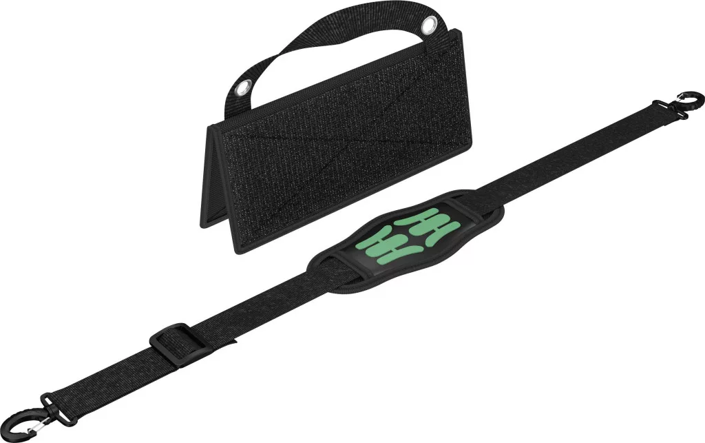 A Wera 2go 1 a szuper könnyű és mobil eszköztartó minden Wera táska és textildoboz számára, tépőzáras hátul. A táskák és dobozok külön-külön és egyszerűen a szerszámtartóhoz vannak rögzítve. A hordszíj szállítás közben szabadon hagyja a kezét.