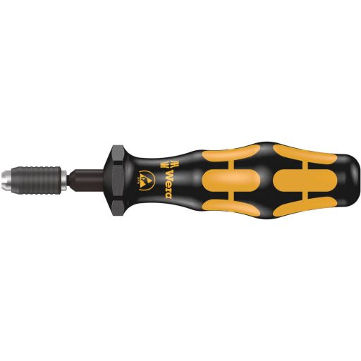 Wera csavarhúzó. Biztonságos védelem az elektrosztatikus energia és az ahhoz kapcsolódó károsodások ellen. Előre beállított nyomatékértékkel minden olyan alkalmazáshoz, ahol állandó nyomaték és ismételhetőség szükséges. A nyomaték értéke a mérési tartományon belül megváltoztatható. Rapidaptor gyorscsere technológia a villámgyors bit cseréhez Korlátlan lazítási nyomaték berágódott csavarok oldására Többkomponensű Kraftform markolat kemény és lágy zónákkal a gyors munkához és a kéz felület kímélésére. Alkalmas 1/4 "-es hatszögletű hajtásokhoz a DIN ISO 1173-C 6.3 és az E 6.3 (ISO 1173) szerint.