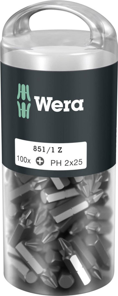 Szállítás tartalma: 100 db Wera 851/1 Z bites csomag PH2 x 25 mm · Visszazárható doboz.