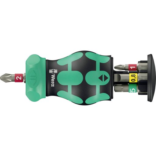 Különösen kicsi bittartó rendkívül rövid bittartóval a nehezen elérhető helyekhez. A nyélbe integrált finom fogazatú racsni gyors munkát biztosít. A csavarozási irány váltása intuitív: ha a gyűrűs kapcsolót jobbra forgatjuk, a csavar jobbra forog ha a gyűrűs kapcsolót balra forgatjuk, a csavar balra forog. Precíz munkavégzéshez a racsnis mechanizmus a 0 pozíció használatával kikapcsolható. 6 db BiTorsion bitet tartalmaz a hosszú élettartamért, strapabíró, univerzális használatra. Take it easy szerszámkeresővel: színkódolás és méretbélyegző a kívánt bit egyszerű megtalálásához. A bittartóban található erős permanens mágnes biztosítja a bit biztonságos rögzítését. A kétkomponensű Kraftform nyél a kemény és puha zónák praktikus kombinációjával biztos fogást és precíz munkát tesz lehetővé.