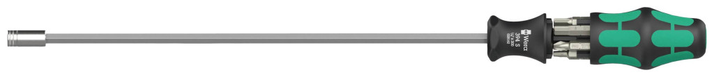 7 részes bitkészlet, amely különösen alkalmas a szaniter-, fűtés- és légkondicionálási szektorban történő alkalmazásokhoz. Bitkézi tartó 300 mm hosszú pengével és nagyon vékony, zárható bittartóval a nehezen elérhető helyek eléréséhez. A különösen vékony kialakításnak köszönhetően a csavarok nagyon szűk beépítési helyzetekben is működtethetők. Többkomponensű Kraftform markolat, a gyors munkavégzéshez és különösen ergonomikus csavarozáshoz A fogantyúba integrált tár a bitek tárolására. 6 szívós, 25 mm hosszú bit (Phillips, TORX® és hatszögletű foglalat). Ez a készlet egy 6 darabból álló csavarhúzó készletet helyettesít, és minimálisra csökkenti a szükséges felszerelést. Hatlapú gördülés védelemmel az elgurulás ellen.