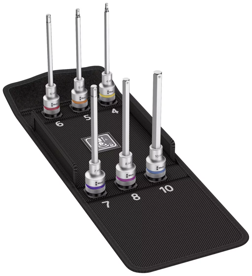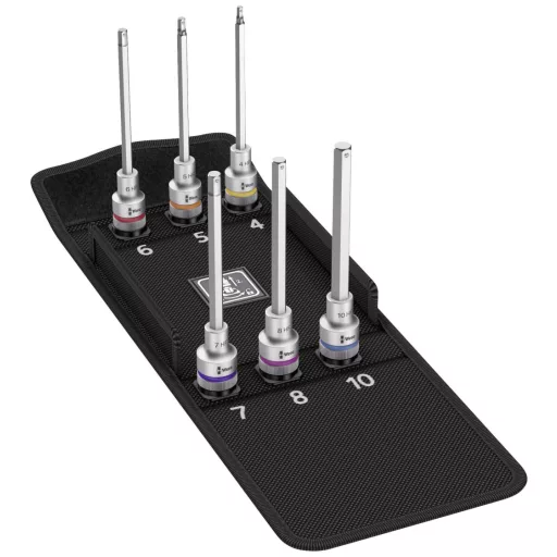 Hatlapfej készlet, hatlapfejű foglalat, tartó funkcióval a különösen kényelmes csavarozás érdekében, csökkentve a csavarvesztés kockázatát a munkadarabhoz történő adagoláskor.
